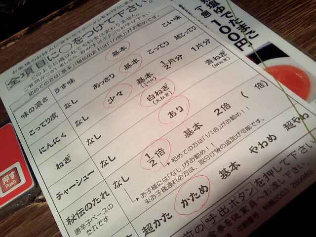 例えばラーメン屋にて。